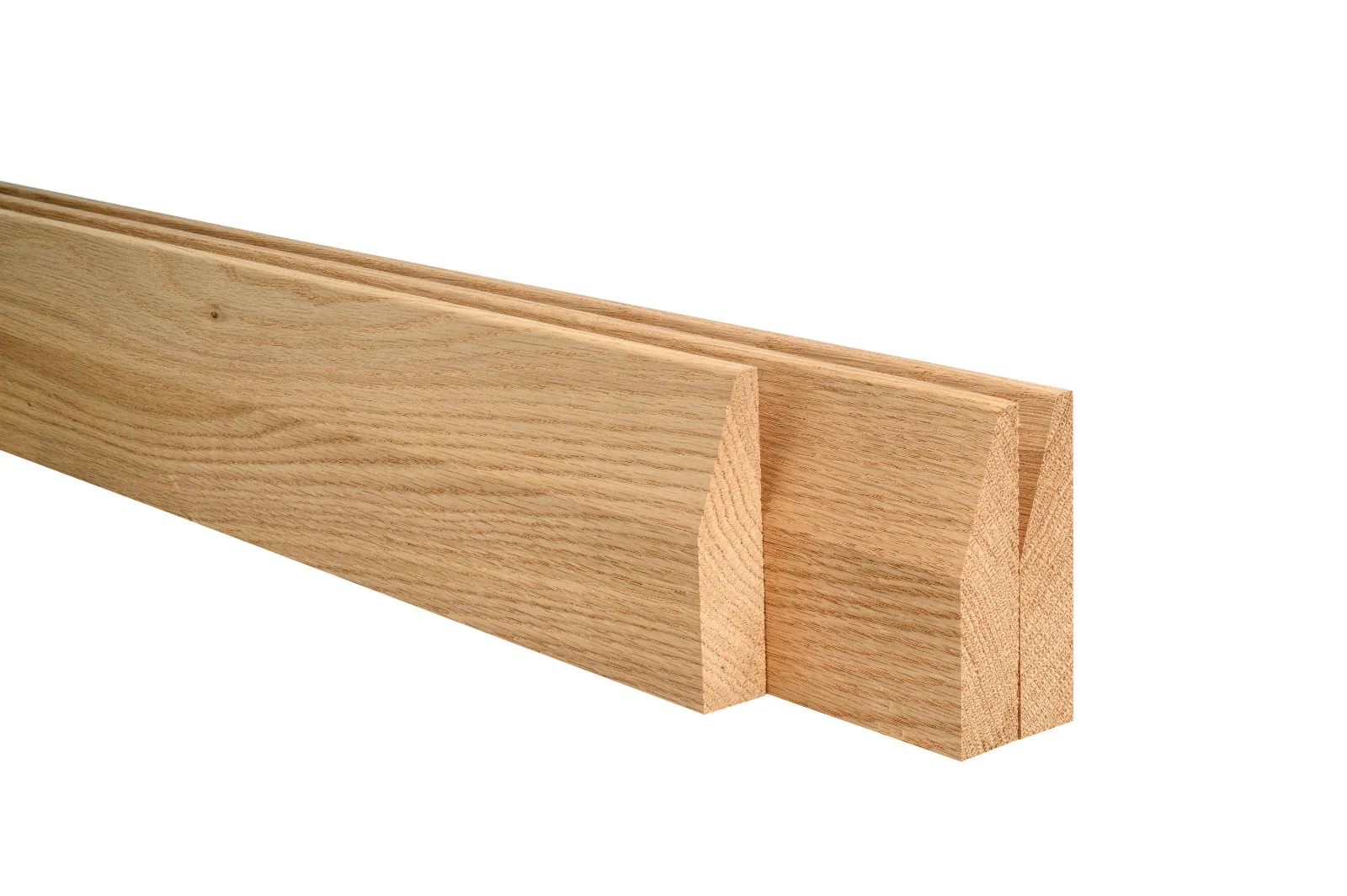 Radius Chamfer Style, choose from 20x70mm or  20x95mm Solid Oak Architrave Sets available in 2 different door frame options. Choose from a standard door opening or a wide/double width opening for a pair of doors. 100% Solid American Oak, Kiln Dried and the boards are virtually clear of knots. One standard set contains 3 pieces in total and made up of 2/2.1m and 1/1.1m long to cover one side of one standard door frame. One double width set contains 3pcs total - 2/2.1m, 1/2.0m to cover one side of a double door frame.